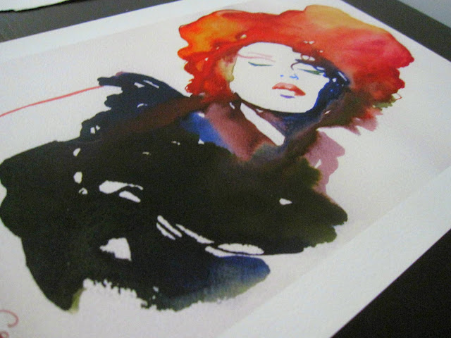 I was fortunate enough to receive a print from Cate along with the paintings that I had ordered (does it look familiar :)? ) Â I was blown away by the quality of the print. Â It is a professional archival Glicee print on BFK Rives paper. Â The colors are extremely vibrant and the lines distinct.