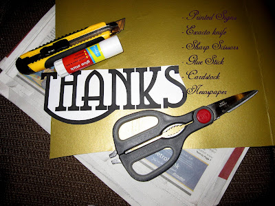 3. Paste words/shape onto back of cardstock.  Line the bottom of cardstock with newspaper to protect your cutting surface.