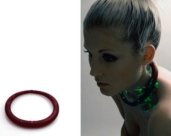 Artisans have utilized many different mediums for creating jewelry – gold, silver, pearls, shells, etc. These materials are usually natural materials that have been manipulated into beautiful shapes. Well a new age of jewelry may be upon us as Aurora creates jewelry from patterns of light that emit from a single ring or piece. The different patterns of lights directly on the skin are definitely unique. But is this something that will catch on or will consumers stick to traditional materials that are not from Tron?
