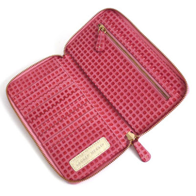 This year she has designed a Fuchsia Tiled Embossed Lamb wallet, retail $175.